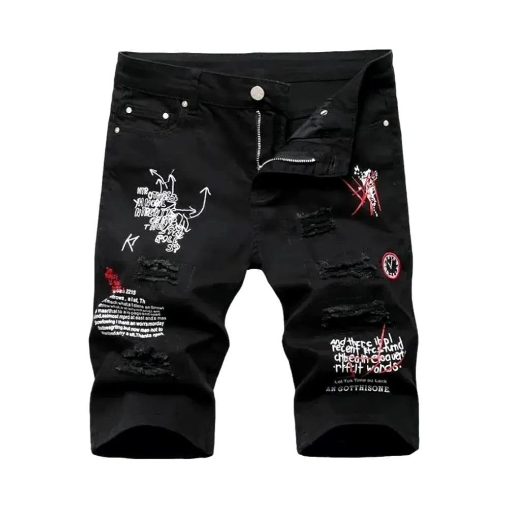 Experience the best of both worlds with our slouchy high-waist denim shorts, featuring a monochrome black color and knee-length fit for a sleek and stylish look. The high-waist design adds a touch of vintage charm while the zipper and button closure provide both functionality and fashion. These shorts are set to elevate your summer wardrobe and become your go-to piece for any occasion.