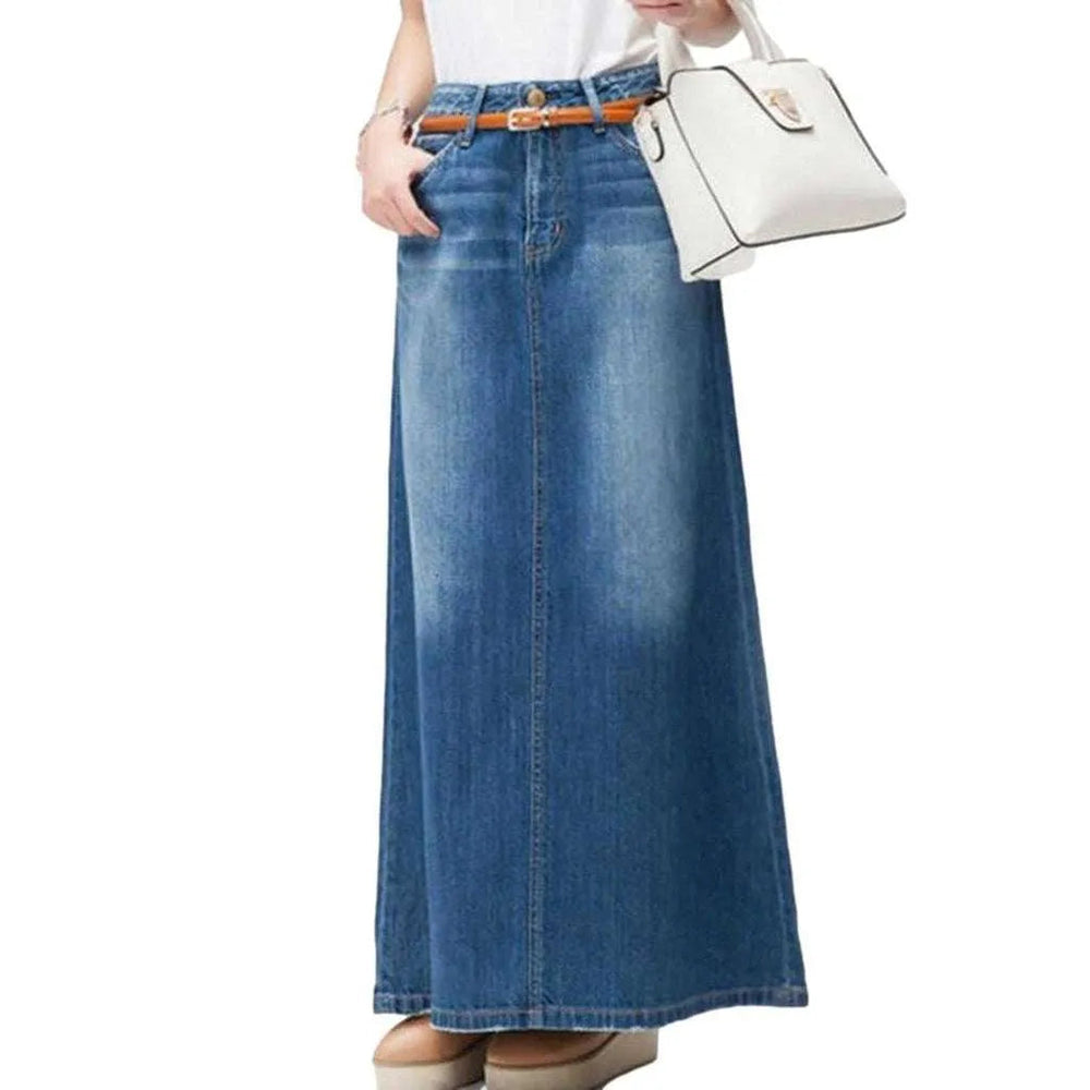 Introducing the 2023 Summer Collection's Urban Trend Lengthy Flare Jeans Skirt designed for the confident trendy woman who radiates with style and grace!